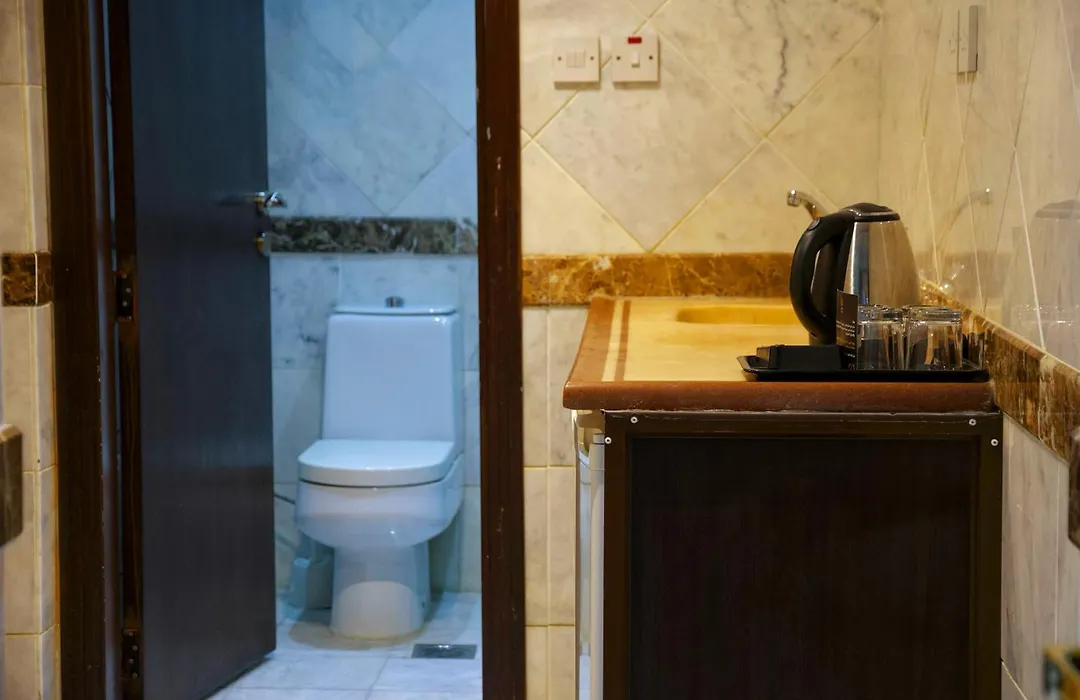تشتمل الحمامات الخاصة على شطافة بيديه والدوش بالإضافة إلى وسائل راحة مثل مجفف الشعر والنعال.